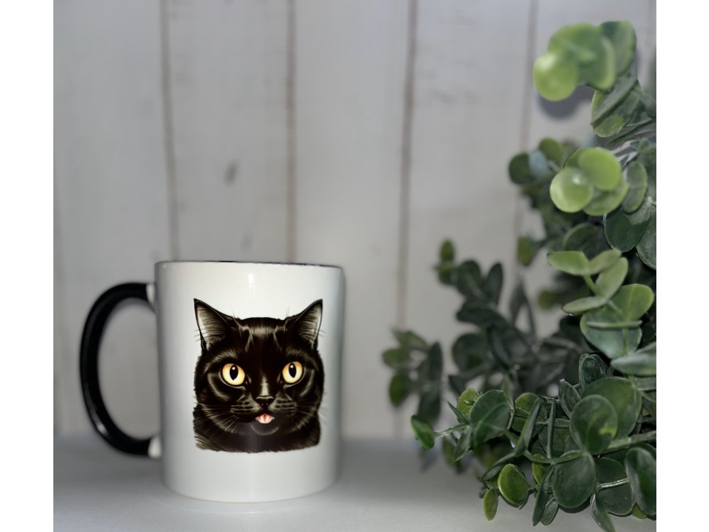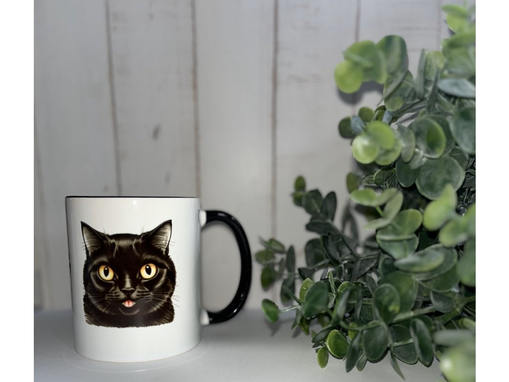 Bílý keramický hrnek s černým vnitřkem a uchem s originálním kočičím motivem ti zpříjemní každou chvilku s tvým oblíbeným nápojem. Hrnek je vhodný do myčky i do mikrovlnné trouby.