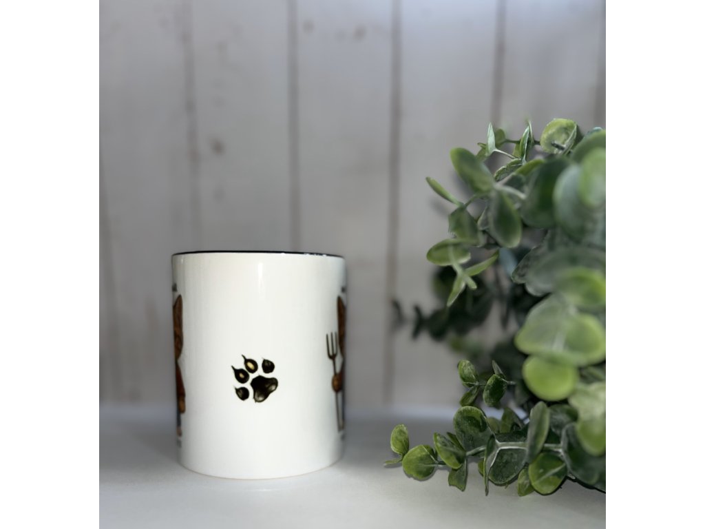 Bílý keramický hrnek s černým vnitřkem a uchem s originálním kočičím motivem ti zpříjemní každou chvilku s tvým oblíbeným nápojem. Hrnek je vhodný do myčky i do mikrovlnné trouby.