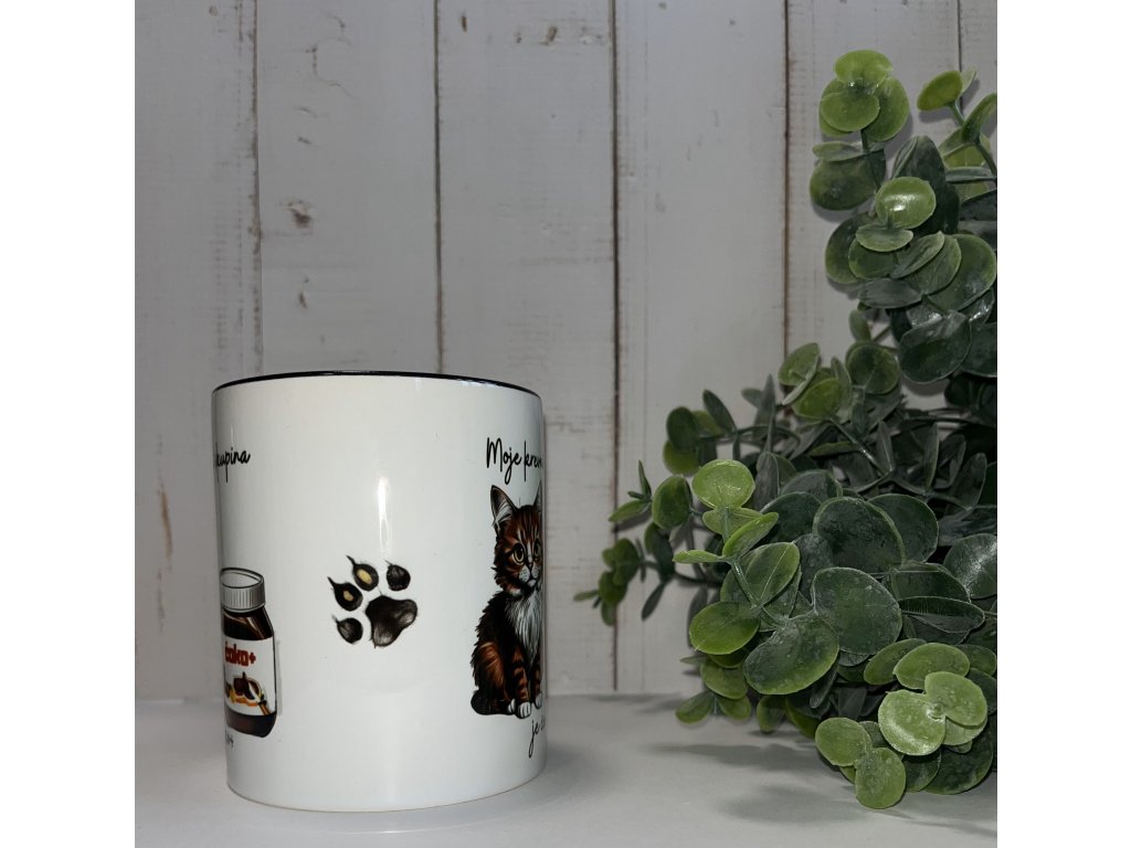 Bílý keramický hrnek s černým vnitřkem a uchem s originálním kočičím motivem ti zpříjemní každou chvilku s tvým oblíbeným nápojem. Hrnek je vhodný do myčky i do mikrovlnné trouby.