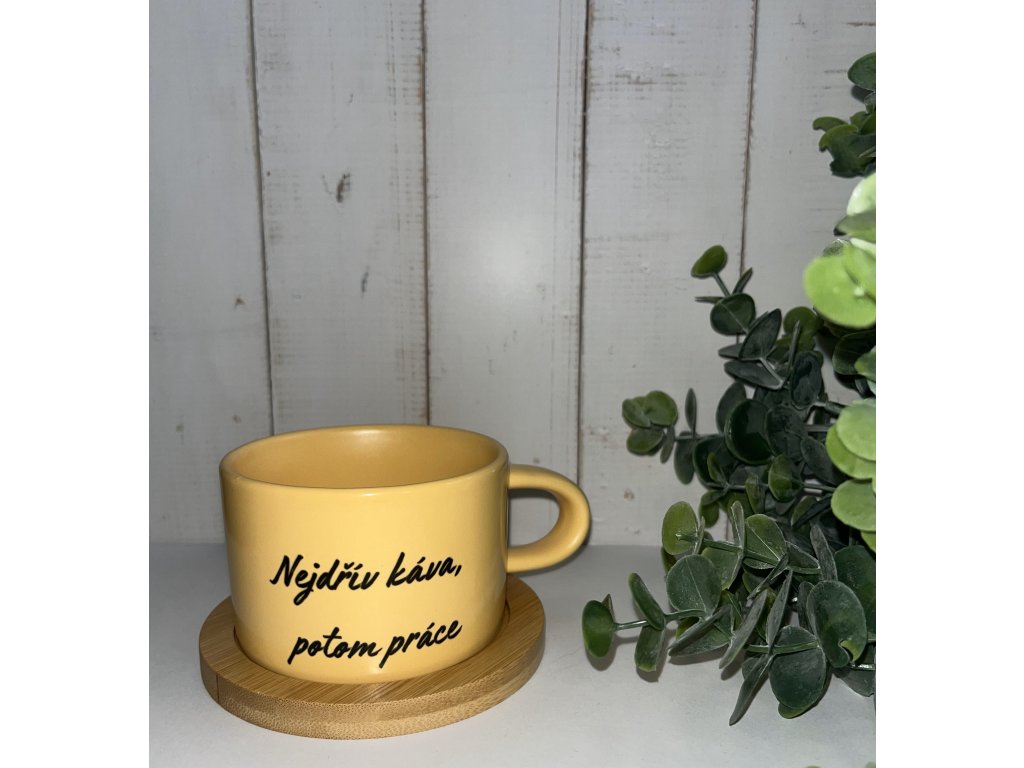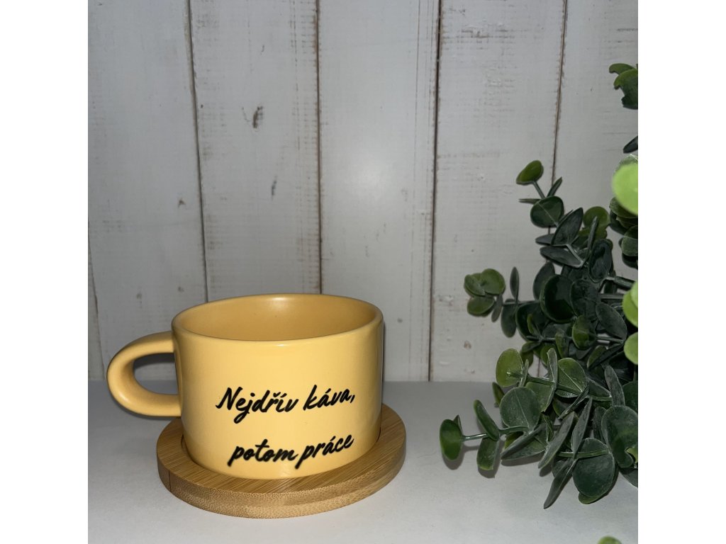 Hrnek Makronka - Nejdřív káva, potom práce 200 ml - Žlutá