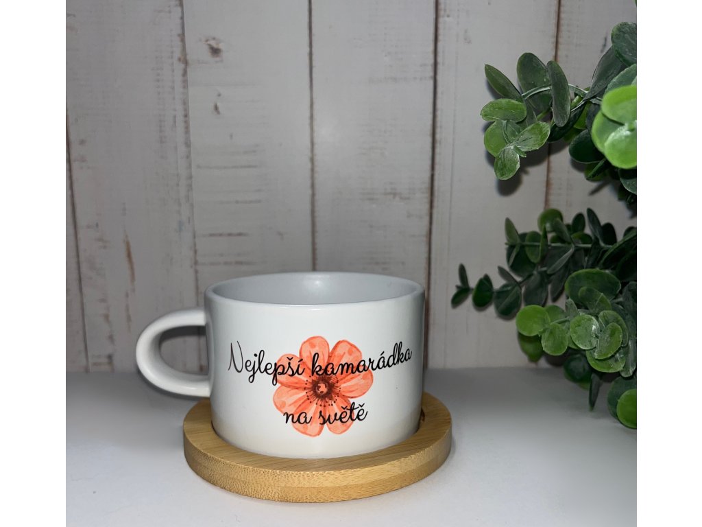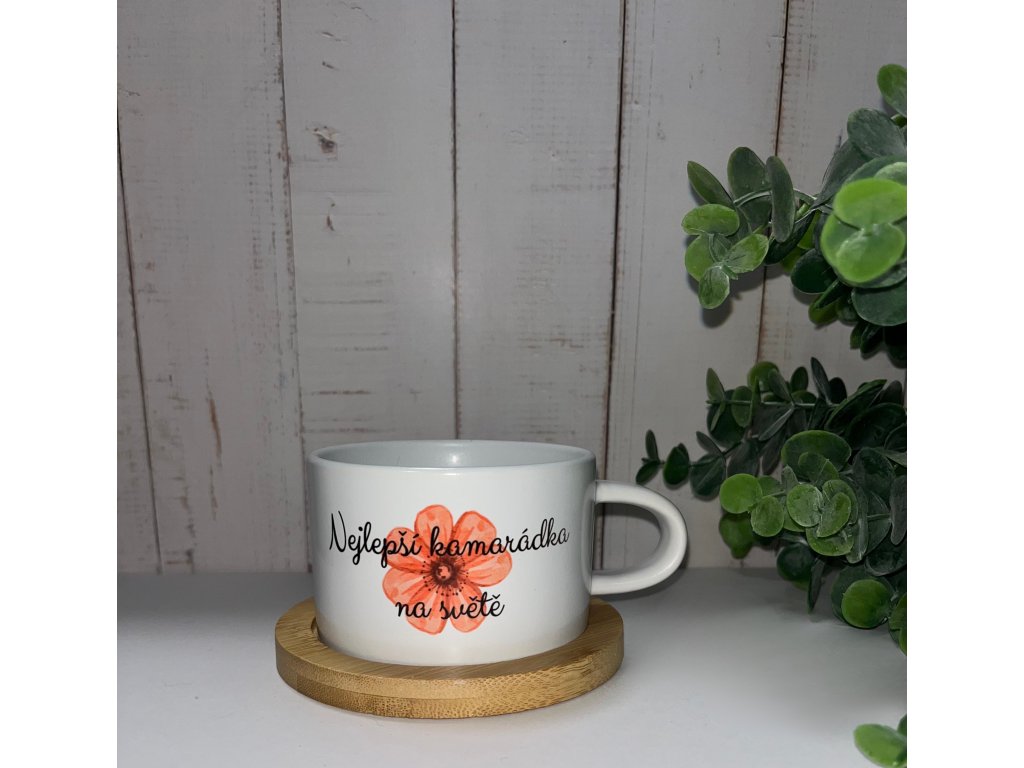 Keramický hrnek Makronka ti zpříjemní každou chvilku s tvým oblíbeným nápojem. Součástí produktu je přírodní bambusový podtácek. V případě zájmu je možné vyhotovit vlastní text na přání.
