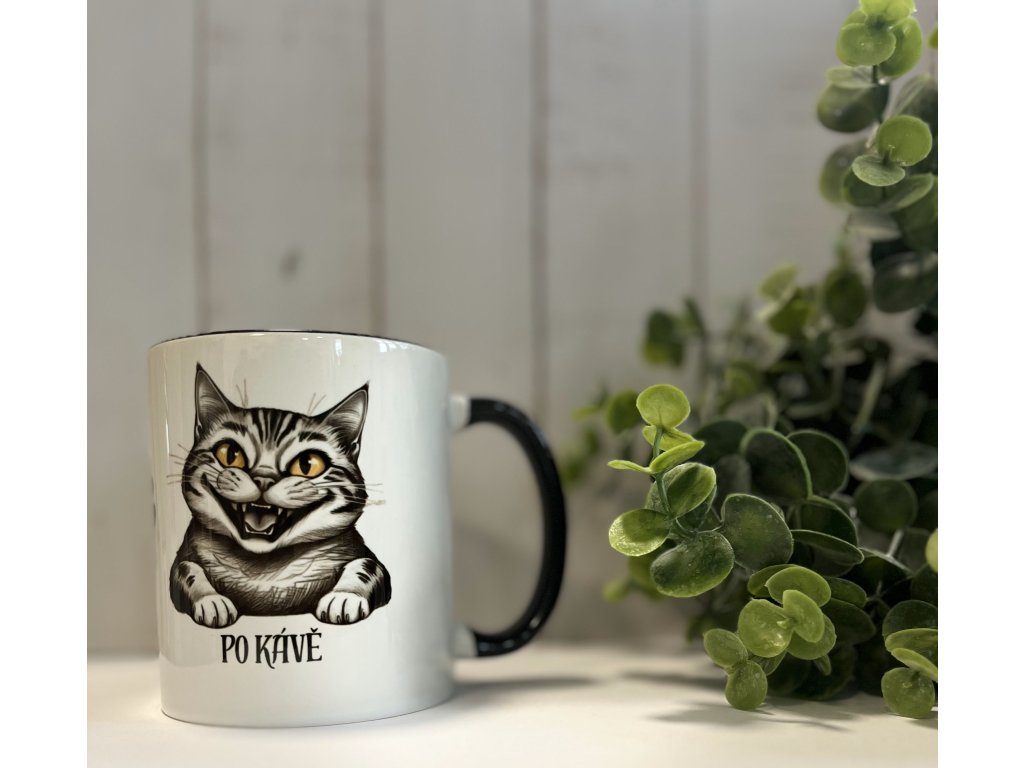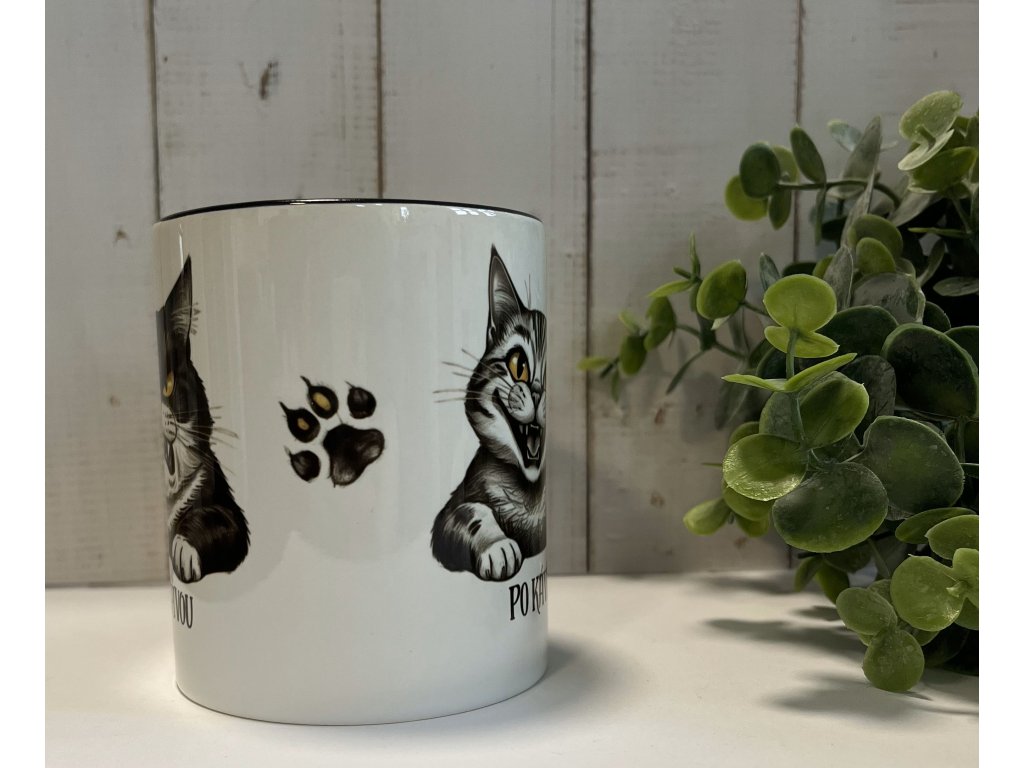 Bílý keramický hrnek s černým vnitřkem a uchem s originálním kočičím motivem ti zpříjemní každou chvilku s tvým oblíbeným nápojem. Hrnek je vhodný do myčky i do mikrovlnné trouby.