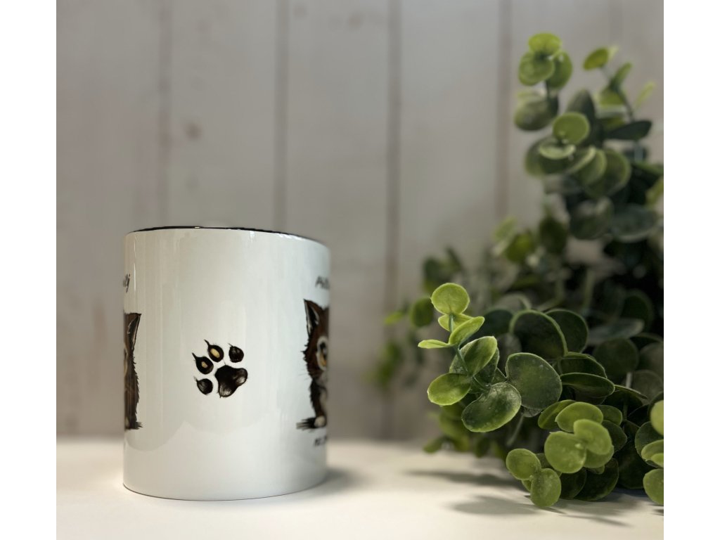 Bílý keramický hrnek s černým vnitřkem a uchem s originálním kočičím motivem ti zpříjemní každou chvilku s tvým oblíbeným nápojem. Hrnek je vhodný do myčky i do mikrovlnné trouby.